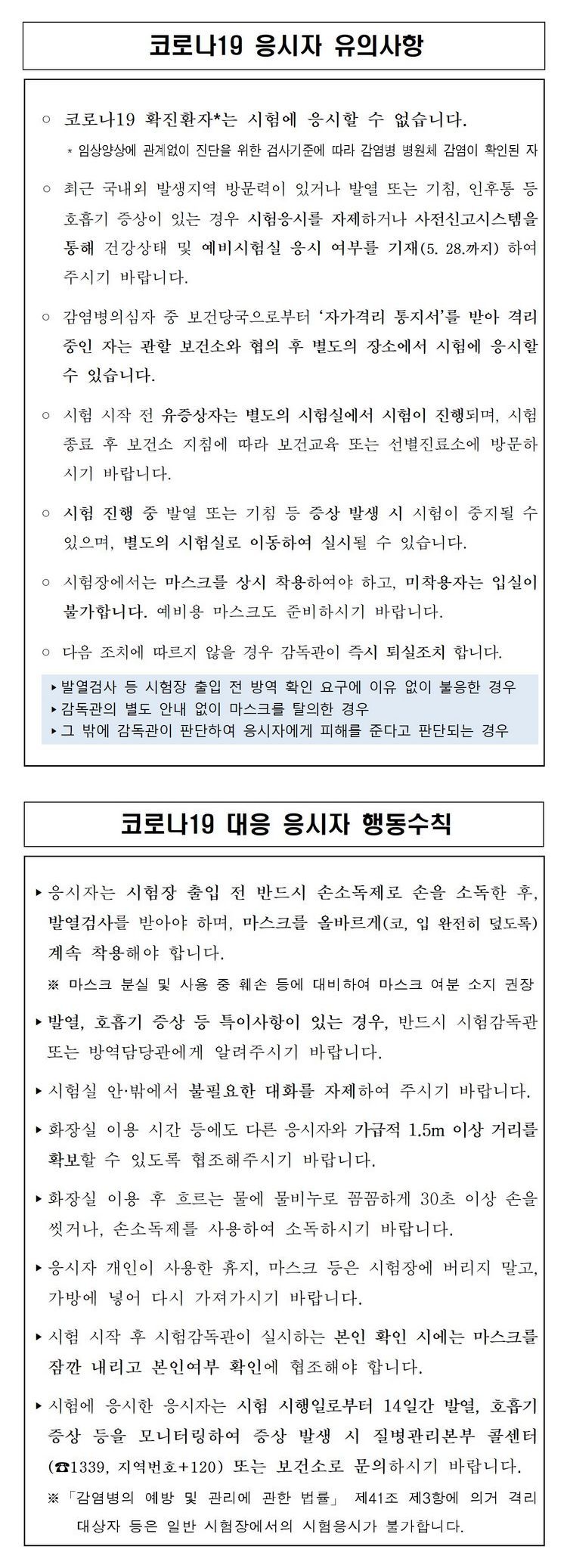「코로나19 대응 응시자 행동수칙」을 반드시 숙지하시기 바랍니다.