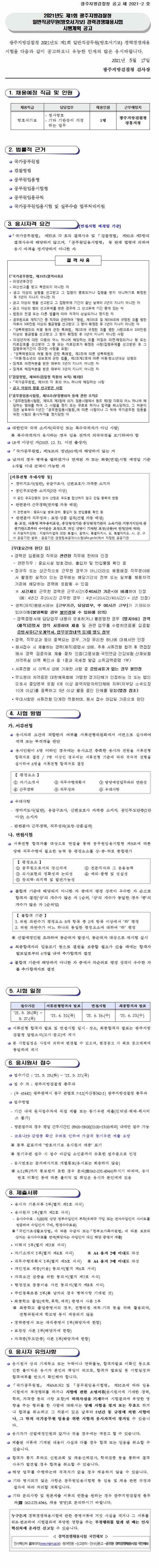 광주지방검찰청 일반직공무원(방호서기보) 경력경쟁채용시험 시행계획 공고(~5.27) 페이지 정보 작성자 관리자 댓글 0건 조회 2,203회 작성일 21-05-21 15:02 목록 본문 이전글★ 2021 제19회 국회사무처 8급 공개경쟁채용시험 필기시험 응시율 21.05.21 다음글전남 여수시 지방임기제공무원 임용시험 시행계획 공고(~5.25) 21.05.21 댓글 0 댓글목록 등록된 댓글이 없습니다.