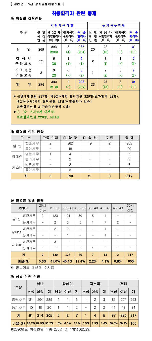 ★ 2021 법원행정처 9급 공개경쟁채용시험 최종합격자 관련 통계 페이지 정보 작성자 관리자 댓글 0건 조회 2,631회 작성일 21-04-09 08:57 목록 본문 이전글★ 2021 광주시 소방공무원 채용 필기시험 응시율 21.04.13 다음글2021 인사혁신처 국가공무원 9급 공채 필기시험 시·도별 시험장소 예정지 변경 안내 21.04.07 댓글 0 댓글목록 등록된 댓글이 없습니다.