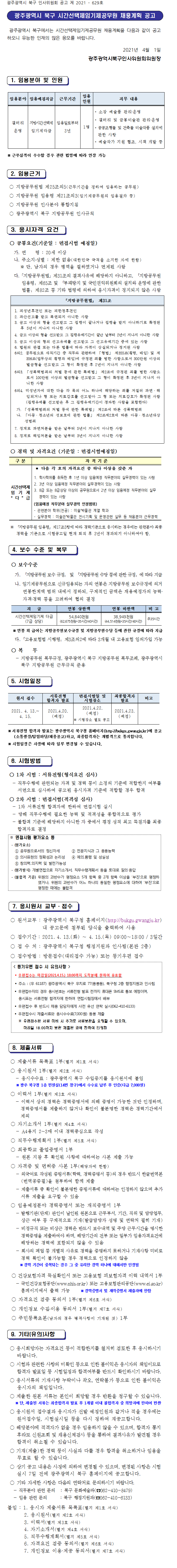 광주시 북구 시간선택제임기제공무원 채용계획 공고(~4.15) 페이지 정보 작성자 관리자 댓글 0건 조회 2,110회 작성일 21-04-07 09:40 목록 본문 이전글전남 지방임기제공무원 임용시험 계획 공고(~4.15) 21.04.07 다음글목포지방해양수산청 청원경찰 공개경쟁채용시험 시행계획 공고(~4.9) 21.04.07 댓글 0 댓글목록 등록된 댓글이 없습니다.