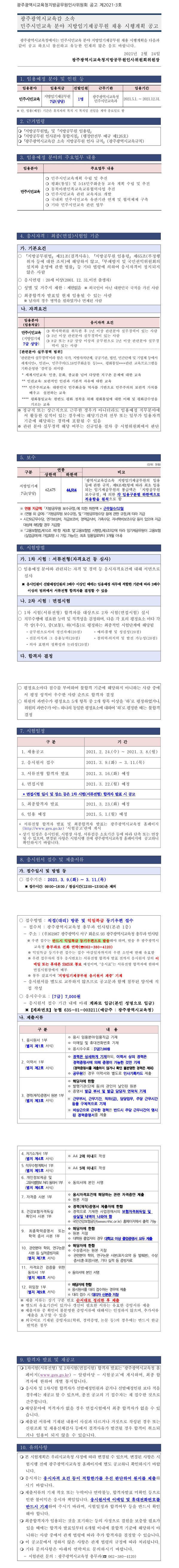 광주시교육청 민주시민교육 분야 지방임기제공무원 채용 시행계획 공고(~3.11) 페이지 정보 작성자 관리자 댓글 0건 조회 2,201회 작성일 21-03-05 11:39 목록 본문 이전글★ 2021 제1회 경찰청 일반직공무원 경력경쟁채용시험 공고(~3.8) 21.03.05 다음글2021년 전국 소방공무원 신규채용시험 시행계획 공고 21.02.24 댓글 0 댓글목록 등록된 댓글이 없습니다.