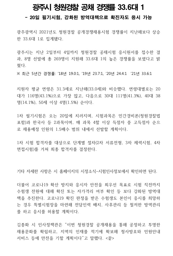 ☆ 2021 광주시 청원경찰 임용시험 경쟁률 페이지 정보 작성자 관리자 댓글 0건 조회 2,534회 작성일 21-03-09 09:37 목록 본문 이전글광주시 임기제공무원 경력경쟁임용시험 공고(~3.23) 21.03.09 다음글[전남] 2021년 제1차 경찰공무원 채용 필기시험장 및 응시생 유의사항 안내 21.03.05 댓글 0 댓글목록 등록된 댓글이 없습니다.