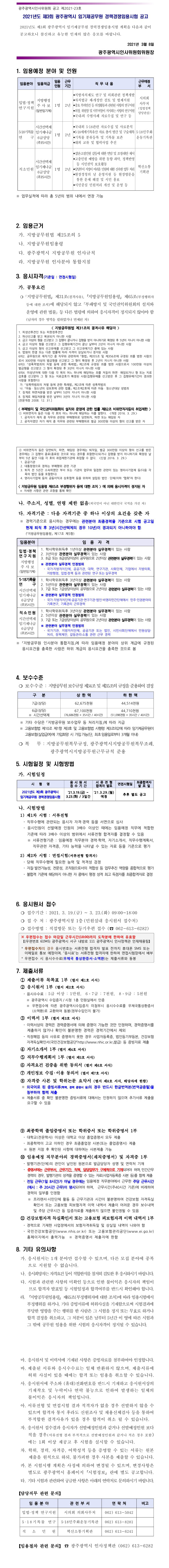 광주시 임기제공무원 경력경쟁임용시험 공고(~3.23) 페이지 정보 작성자 관리자 댓글 0건 조회 2,134회 작성일 21-03-09 09:38 목록 본문 이전글광주시 광산구 임기제공무원 경력경쟁임용시험 시행계획 공고(~3.23) 21.03.09 다음글☆ 2021 광주시 청원경찰 임용시험 경쟁률 21.03.09 댓글 0 댓글목록 등록된 댓글이 없습니다.