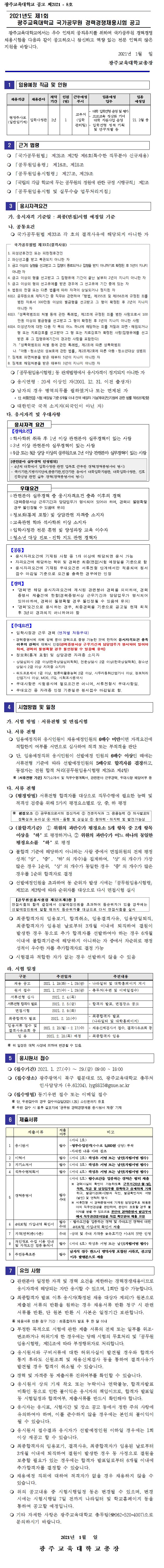 광주교육대학교 국가공무원 경력경쟁채용시험 공고(~1.29) 페이지 정보 작성자 관리자 댓글 0건 조회 2,258회 작성일 21-01-26 09:23 목록 본문 이전글광주시 광산구 임기제공무원 경력경쟁임용시험 시행계획 공고(~2.3) 21.01.26 다음글2021 인사혁신처 국가공무원 경력경쟁채용시험 통합 안내 21.01.26 댓글 0 댓글목록 등록된 댓글이 없습니다.