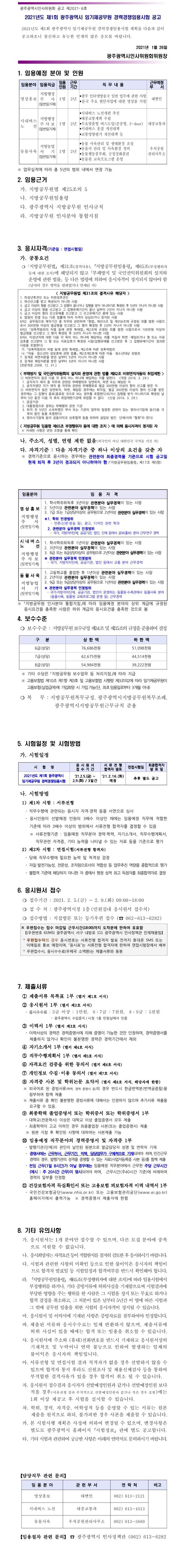 광주시 임기제공무원 경력경쟁임용시험 공고(~2.9) 페이지 정보 작성자 관리자 댓글 0건 조회 2,271회 작성일 21-02-02 14:16 목록 본문 이전글광주출입국외국인사무소 일반직공무원(운전서기보) 경력경쟁채용시험 공고(~2.8) 21.02.02 다음글전남지방우정청 노무업무 분야 행정7급 공무원 경력경쟁채용시험 공고(~2.5) 21.02.02 댓글 0 댓글목록 등록된 댓글이 없습니다.