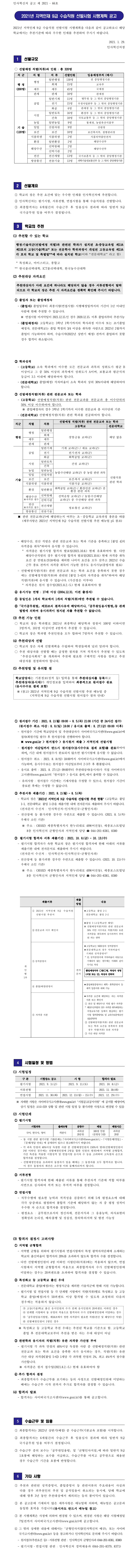 ☆ 2021 인사혁신처 지역인재 9급 수습직원 선발시험 시행계획 공고(~8.5) 페이지 정보 작성자 관리자 댓글 0건 조회 2,880회 작성일 21-02-02 14:18 목록 본문 이전글광주지방국세청 일반임기제공무원(6급) 경력경쟁채용 공고(~2.15) 21.02.02 다음글광주출입국외국인사무소 일반직공무원(운전서기보) 경력경쟁채용시험 공고(~2.8) 21.02.02 댓글 0 댓글목록 등록된 댓글이 없습니다.