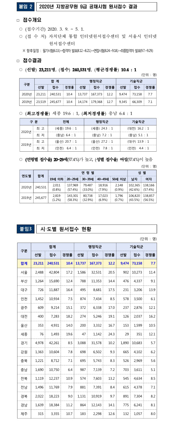 ★ 2020 각 시.도 지방공무원 9급 공채시험 경쟁률