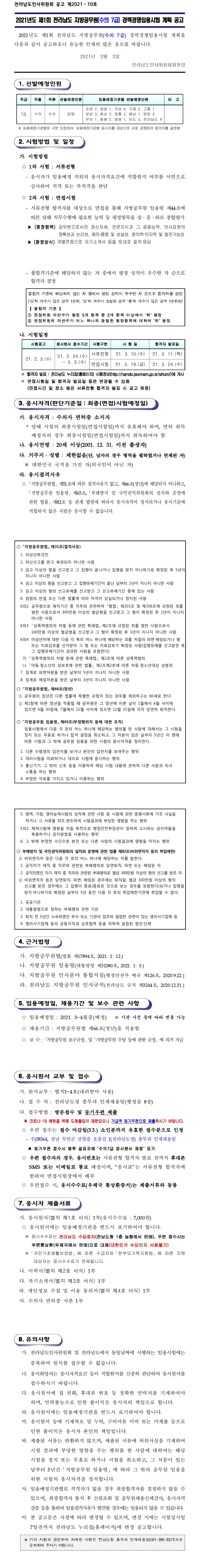 전남 지방공무원(수의7급) 경력경쟁임용시험 계획 공고(~3.3) 페이지 정보 작성자 관리자 댓글 0건 조회 2,305회 작성일 21-02-09 10:04 목록 본문 이전글2021 인사혁신처 국가공무원 9급 공개경쟁채용 필기시험 시도별 시험장소 예정지 안내 21.02.09 다음글2021 제27기 중앙소방학교 소방간부후보생 선발 필기시험 합격선 21.02.09 댓글 0 댓글목록 등록된 댓글이 없습니다.