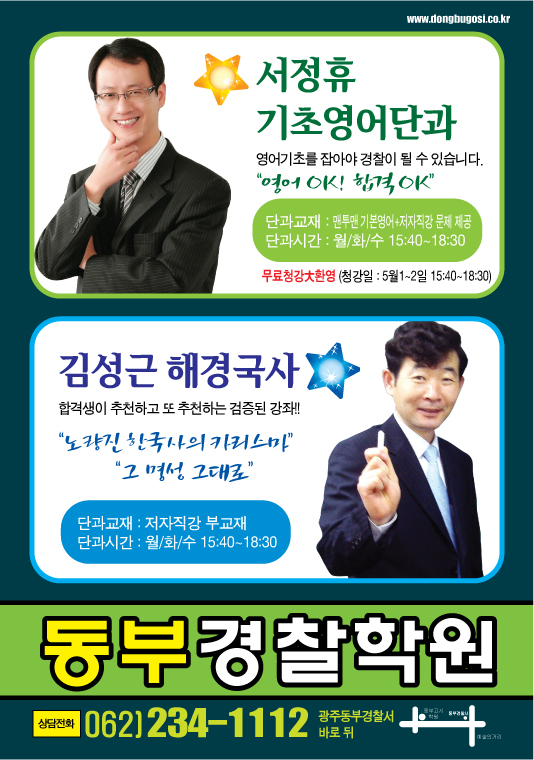 \"합격의 영광을 위한 최선의 선택\" 바로 동부경찰학원입니다.\"