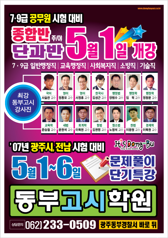 \"합격의 영광을 위한 최선의 선택\" 바로 동부고시학원입니다.