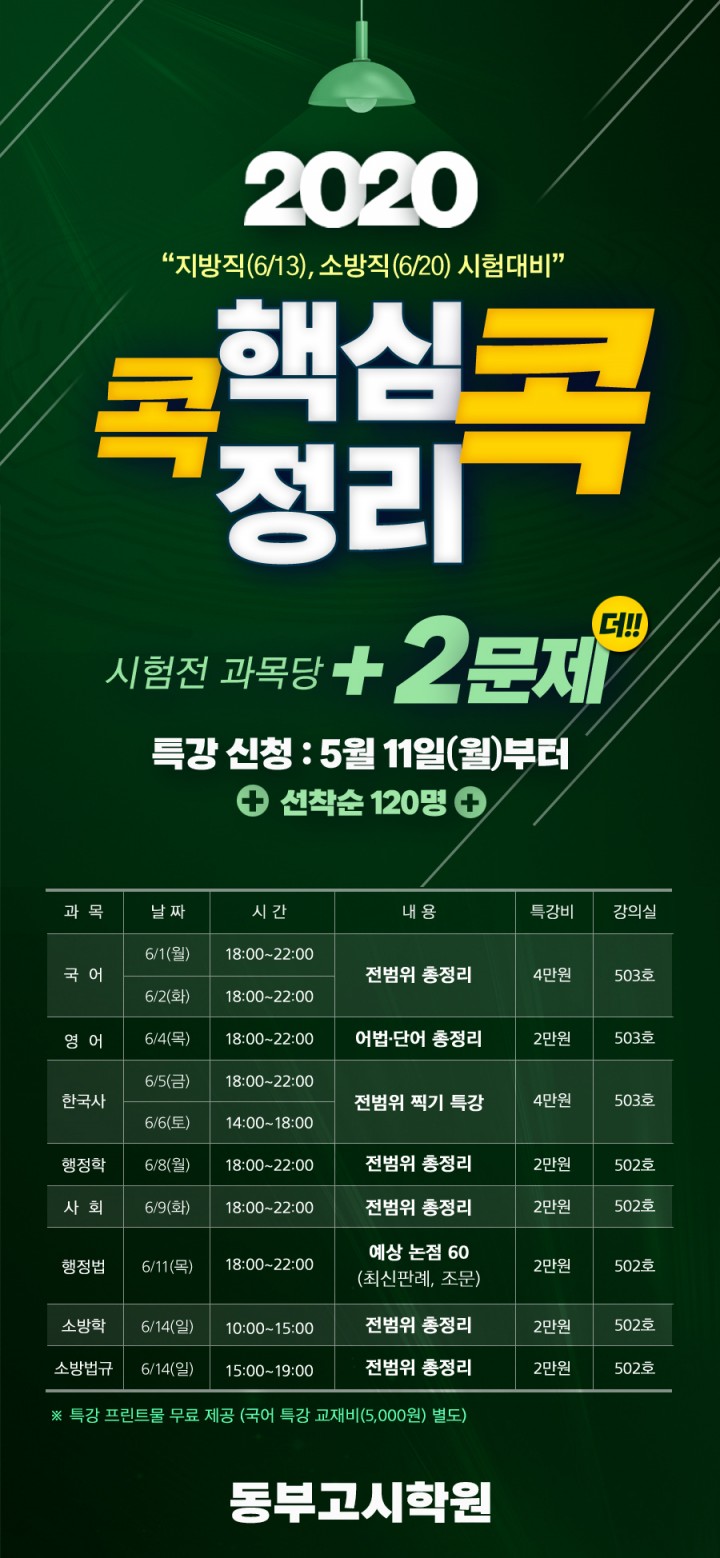 [총정리] 마무리 특강 (6/1~6/14) - 지방직/소방직/국가직 대비 페이지 정보 작성자 관리자 댓글 0건 조회 2,258회 작성일 20-05-09 17:09 목록 본문 이전글[6월 15일] Final 문제풀이반 개강 - 국가직/군무원 대비 20.05.09 다음글[5월 24일] 고전문법 하루특강 - 국가직/지방직/소방직 대비 20.05.09 댓글 0 댓글목록 등록된 댓글이 없습니다.