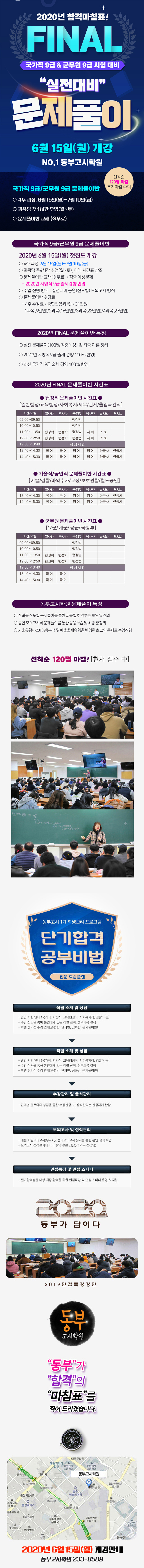 [6월 15일] Final 문제풀이반 개강 - 국가직/군무원 대비 페이지 정보 작성자 관리자 댓글 0건 조회 2,210회 작성일 20-05-09 17:13 목록 본문 이전글[7월 1일] 기술, 보건, 간호직 이론 종합반/단과반 첫진도 개강 20.05.27 다음글[총정리] 마무리 특강 (6/1~6/14) - 지방직/소방직/국가직 대비 20.05.09 댓글 0 댓글목록 등록된 댓글이 없습니다.