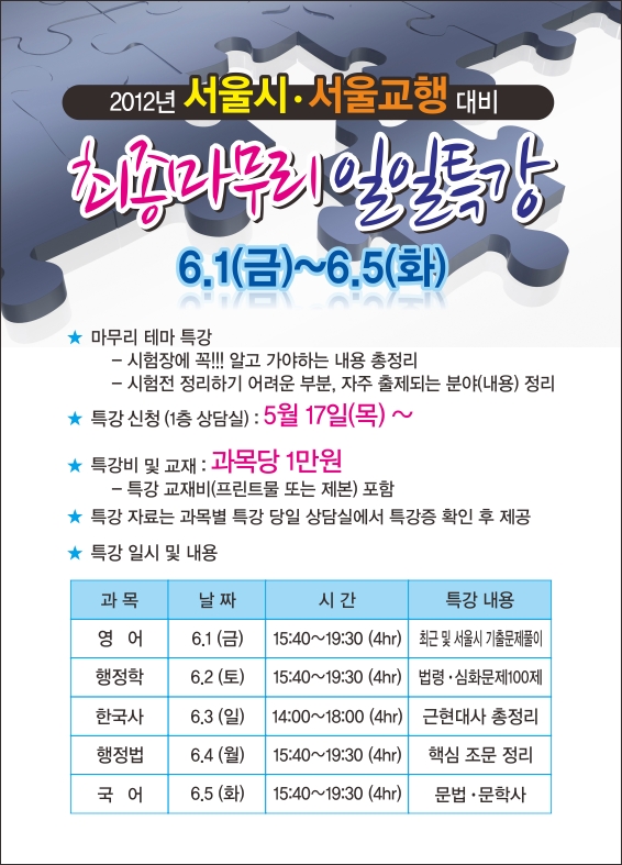 ★ [6.1~6.5] 2012년 서울시 지방직/교육행정직 대비 마무리특강 ★