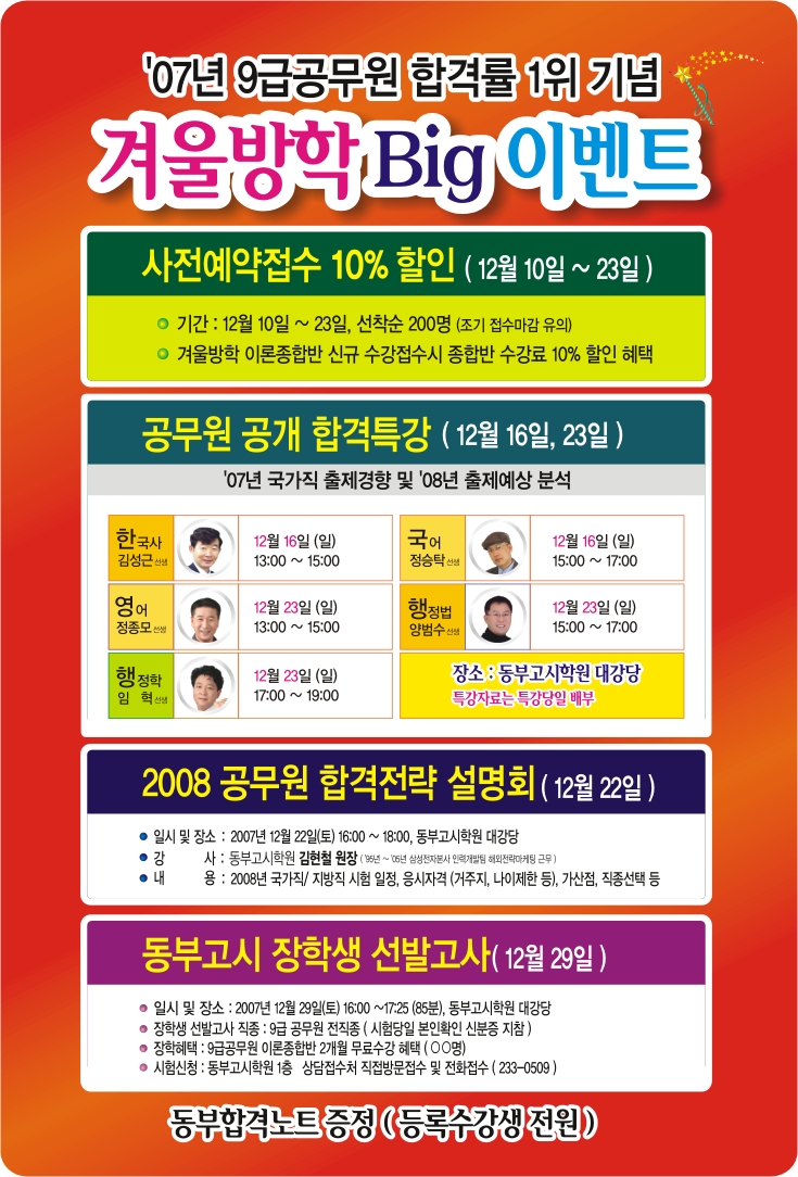 [이벤트 2] '08년 공무원 합격 공개 특강 (12월 16일, 23일)