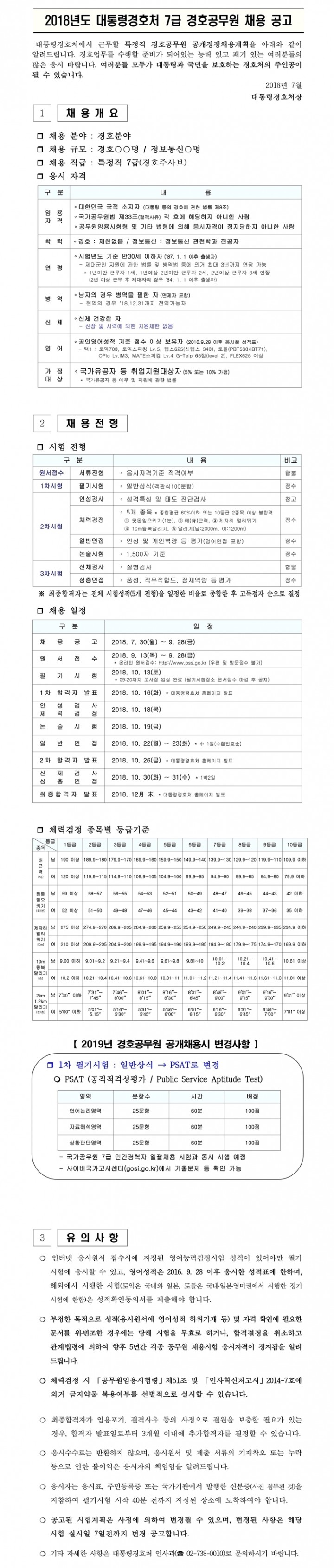 ★ 2018 대통령경호처 7급 경호공무원 채용 공고(~9.28)