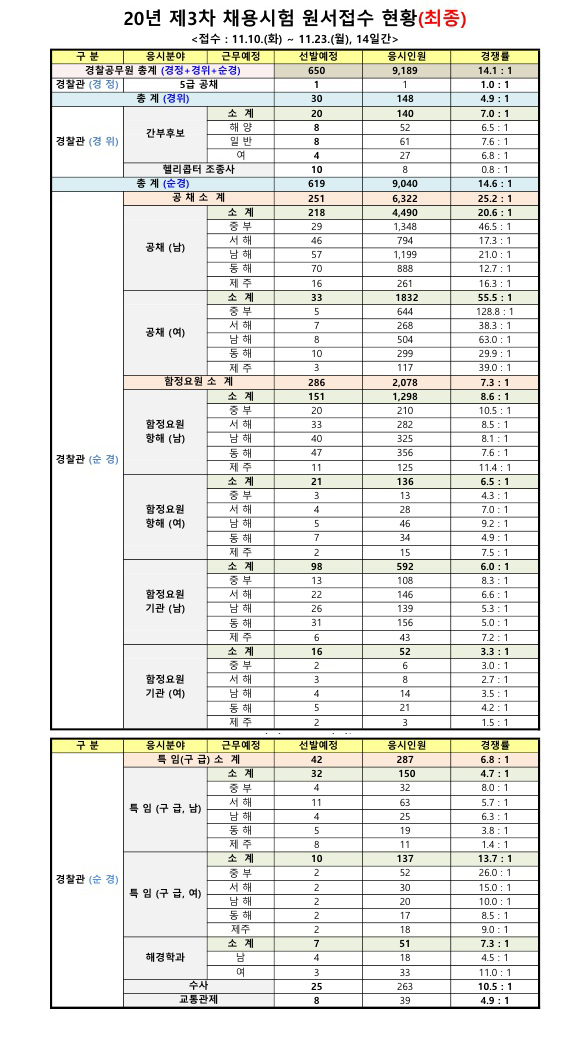 ★ 2020 제3차 해양경찰청 경찰공무원 채용시험 경쟁률 페이지 정보 작성자 관리자 댓글 0건 조회 1,539회 작성일 20-11-28 09:12 목록 본문 [이 게시물은 관리자님에 의해 2020-11-28 09:12:41 최근시험공고문에서 복사 됨] 이전글★ 2021 경찰청 경찰공무원 채용시험 일정 알림 20.12.02 다음글광주지방보훈청(국립5.18민주묘지관리소) 청원경찰 채용 공고(~11.30) 20.11.23 댓글 0 댓글목록 등록된 댓글이 없습니다.