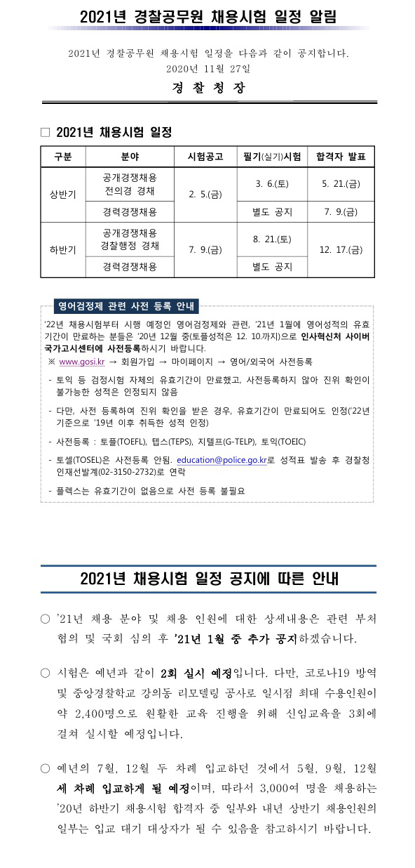 ★ 2021 경찰청 경찰공무원 채용시험 일정 알림