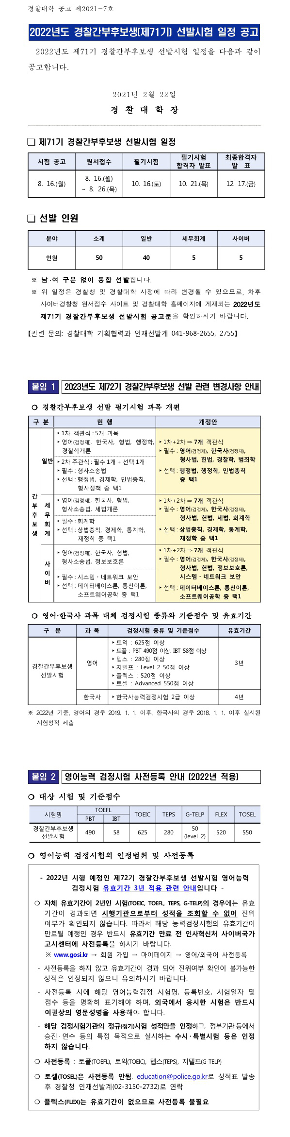 ★ 2022 제71기 경찰간부후보생 선발시험 일정 공고