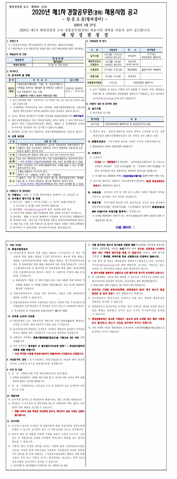 2020 제1차 해양경찰청 경찰공무원(경위-항공조종) 채용시험 공고(~3.12) 페이지 정보 작성자 관리자 댓글 0건 조회 1,484회 작성일 20-02-28 15:38 목록 본문 [이 게시물은 관리자님에 의해 2020-02-28 15:44:04 최근시험공고문에서 복사 됨] 이전글★ 2020 제1차 해양경찰청 경찰공무원(순경-함정요원) 채용시험 공고(~3.12) 20.02.28 다음글☆ 2020 제1차 해양경찰청 경찰공무원(순경-해경학과) 채용시험 공고(~3.12) 20.02.28 댓글 0 댓글목록 등록된 댓글이 없습니다.