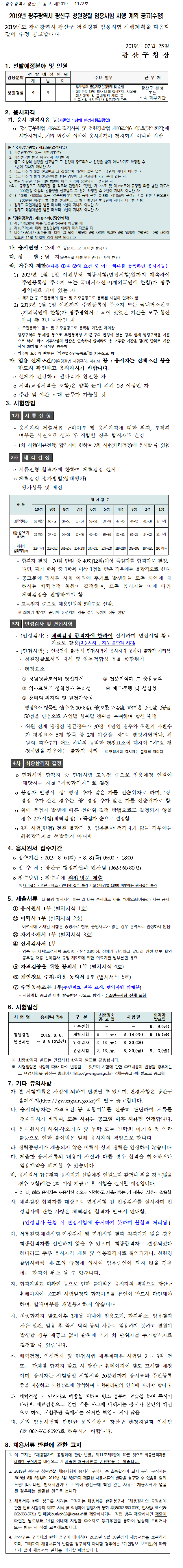 광주시 광산구 청원경찰 임용시험 시행계획 공고(~8.8) 페이지 정보 작성자 관리자 댓글 0건 조회 1,344회 작성일 19-07-29 09:59 목록 본문 [이 게시물은 관리자님에 의해 2019-07-29 10:01:41 최근시험공고문에서 복사 됨] 이전글광주시 동구 청원경찰 채용계획 공고(~8.9) 19.08.01 다음글★ 2019 제2차 경찰청 경찰공무원(순경) 공개경쟁채용시험 공고(~7.22) 19.07.17 댓글 0 댓글목록 등록된 댓글이 없습니다.