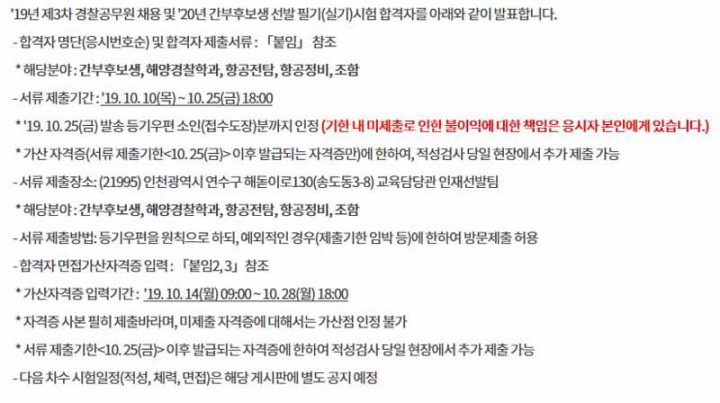 해양경찰청 2019 제3차 경찰공무원 채용 및 2020 간부후보생 선발 필기(실기)시험 합격자 페이지 정보 작성자 관리자 댓글 0건 조회 1,510회 작성일 19-10-16 08:25 목록 본문 [이 게시물은 관리자님에 의해 2019-10-16 08:25:12 최근시험공고문에서 복사 됨] 이전글제369차 경찰청 의무경찰 모집 공고(~11.30) 19.11.07 다음글2020 경찰청 경찰간부후보생(제69기) 선발 필기시험 합격자 공고 19.10.10 댓글 0 댓글목록 등록된 댓글이 없습니다.