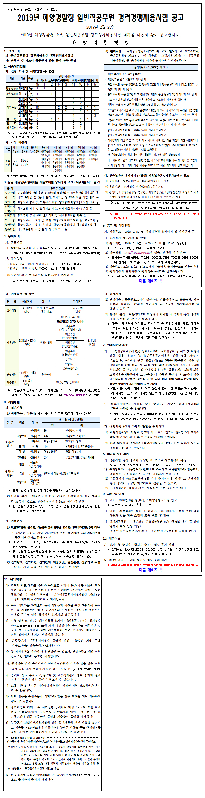 ☆ 2019 해양경찰청 일반직공무원 경력경쟁채용시험 공고(~3.11)