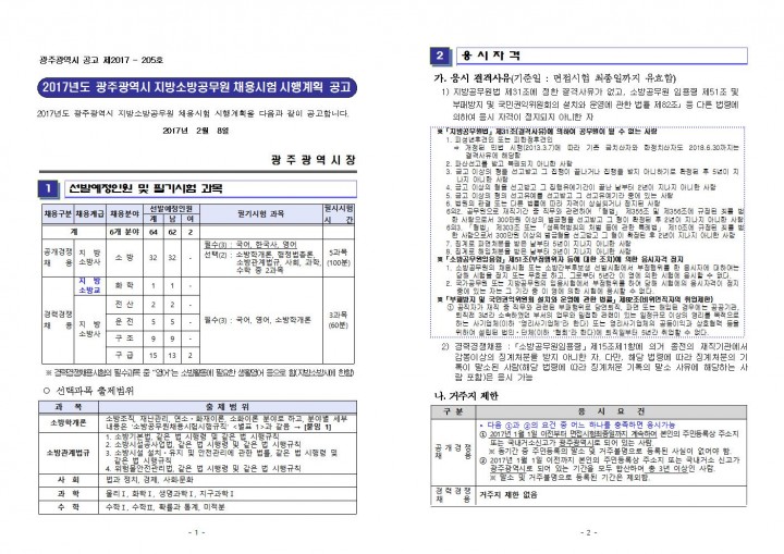 2017 광주시 지방소방공무원 채용시험 시행계획 공고(~2.24)