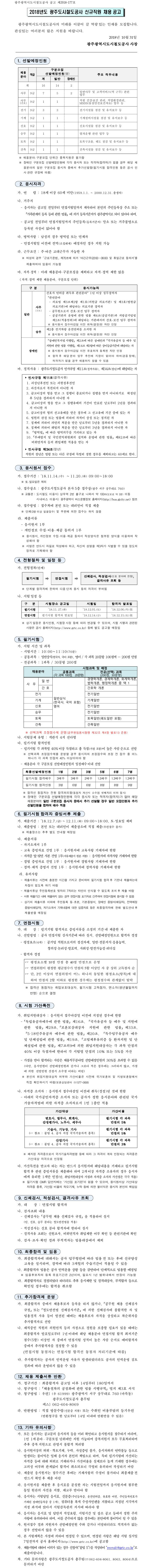 - 이전글2019 상반기 광주시 공공기관 직원 통합 채용 공고(~4.25) 19.06.07