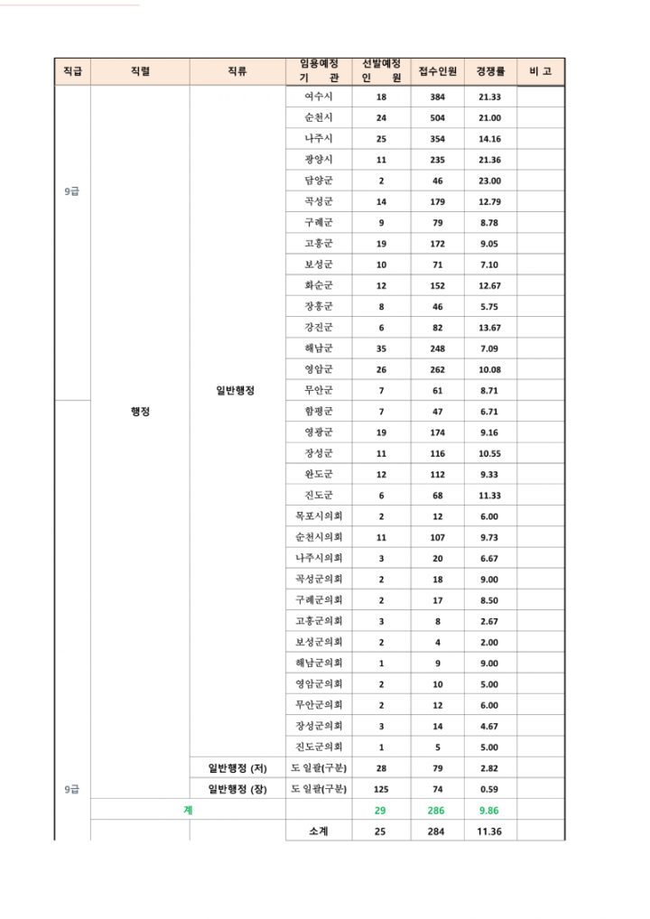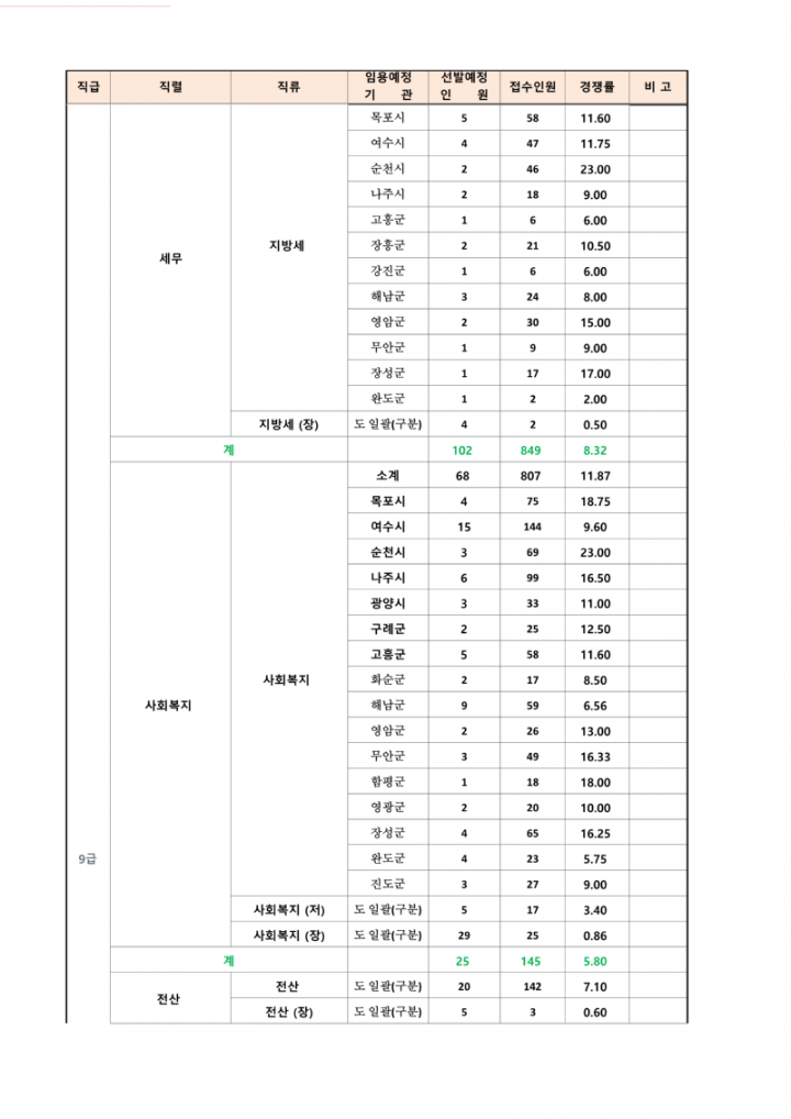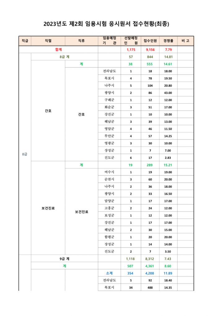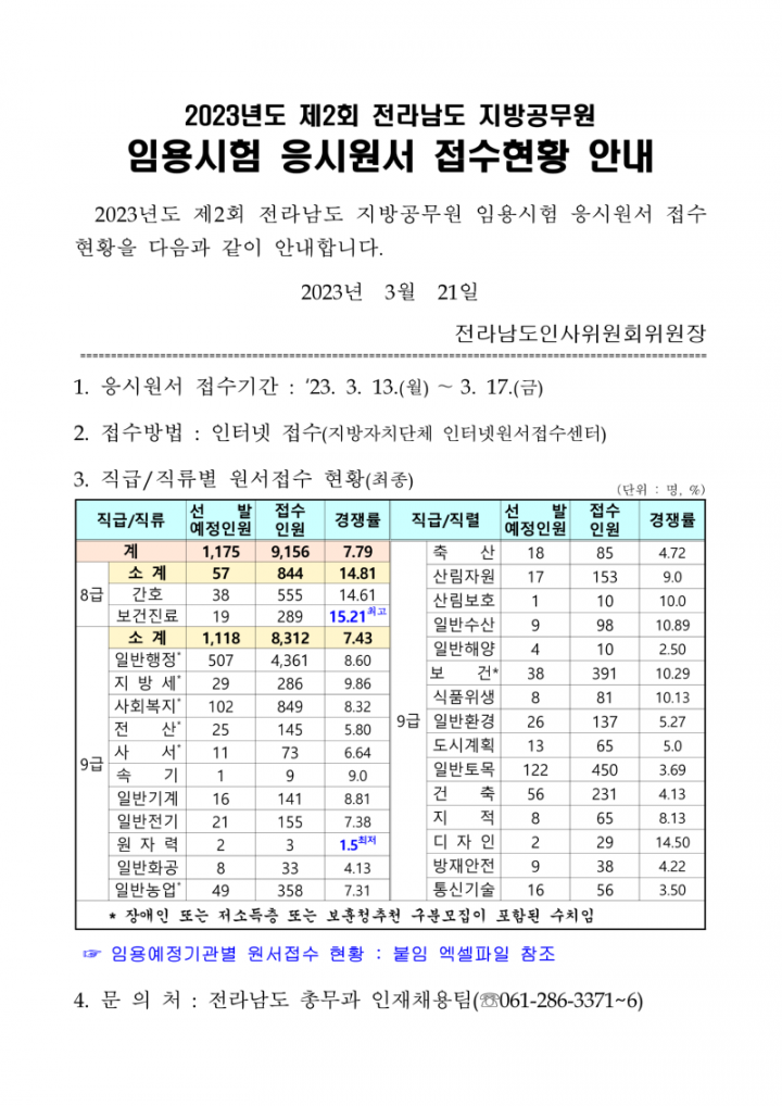 2023년도 제2회 전라남도 지방공무원 임용시험 응시원서 접수현황 안내