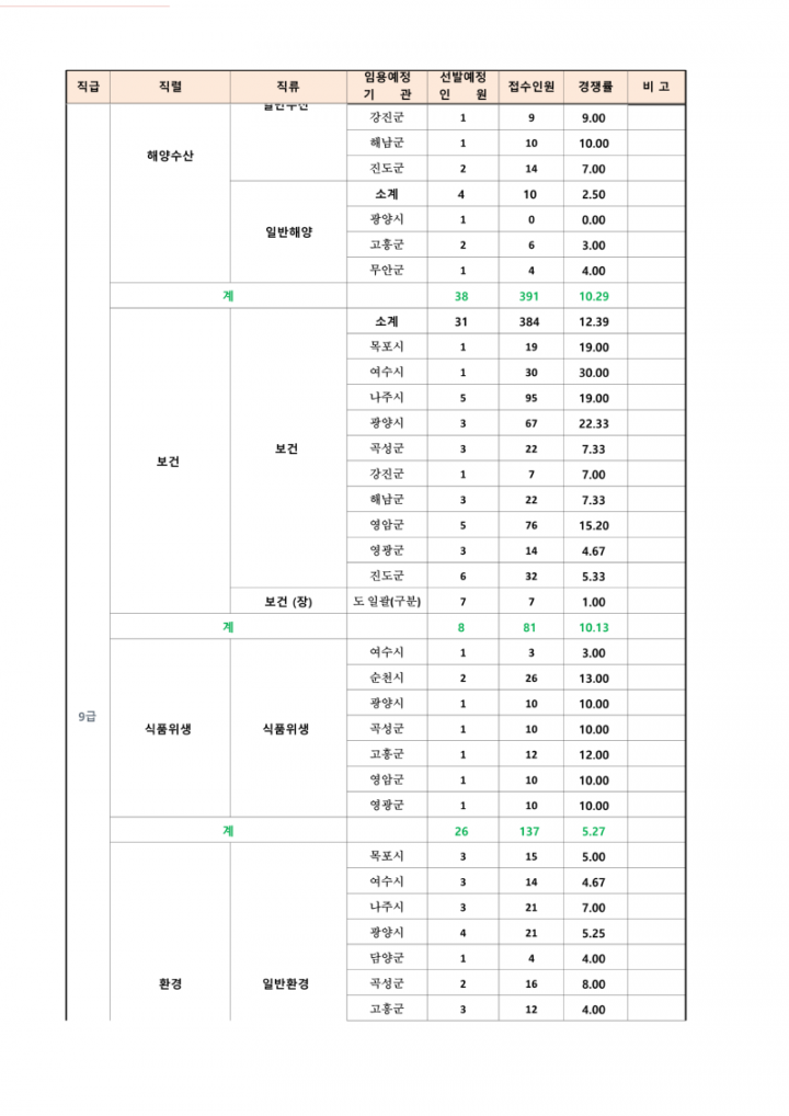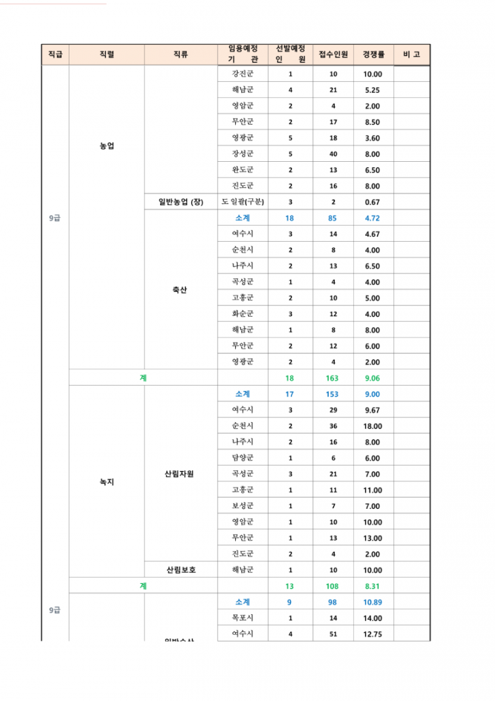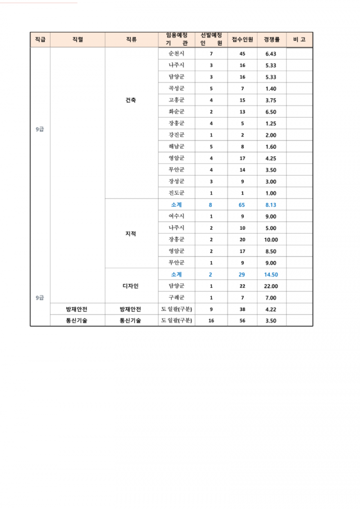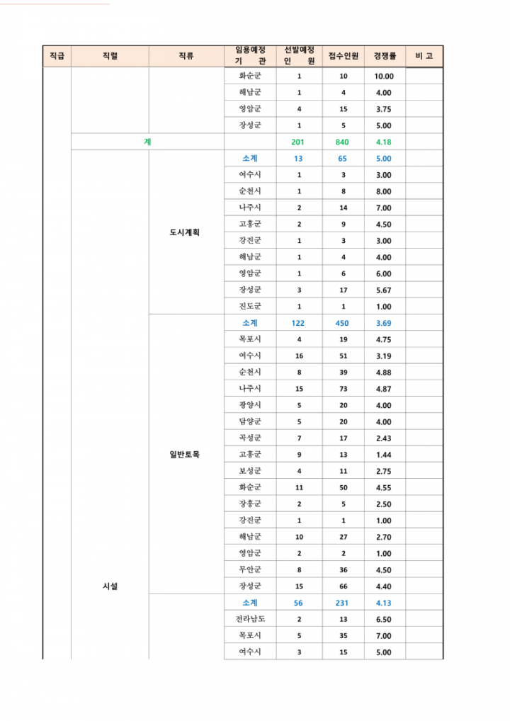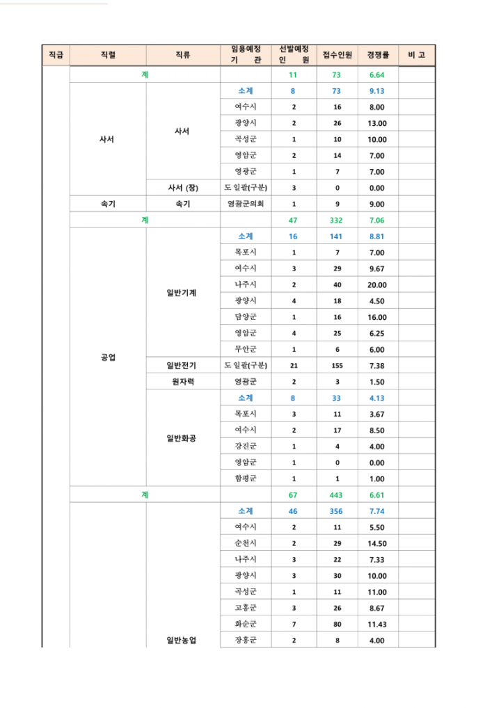 2023년도 제2회 전라남도 지방공무원 임용시험 응시원서 접수현황 안내