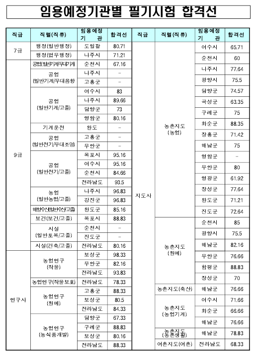 ★ 2019 제5회 전남 지방공무원 임용 제1.2차 필기시험 합격선 페이지 정보 작성자 관리자 댓글 0건 조회 1,497회 작성일 19-11-07 08:40 목록 본문 [이 게시물은 관리자님에 의해 2019-11-07 08:40:40 최근시험공고문에서 복사 됨] 이전글★ 2019 제2회 광주시 지방공무원 임용 필기시험 합격선 19.11.11 다음글★ 2019 인사혁신처 국가공무원 7급 공개경쟁채용시험 최종합격자 통계 19.11.07 댓글 0 댓글목록 등록된 댓글이 없습니다.