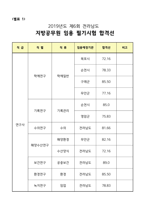 ★ 2019 제6회 전남 지방공무원 임용 제1·2차 필기시험 합격선 페이지 정보 작성자 관리자 댓글 0건 조회 1,489회 작성일 19-12-02 16:22 목록 본문 [이 게시물은 관리자님에 의해 2019-12-02 16:22:54 최근시험공고문에서 복사 됨] 이전글★ 2019 제17회 국회사무처 8급 공개경쟁채용시험 통계자료 19.12.24 다음글제26기 중앙소방학교 소방간부후보생 선발시험 경쟁률 19.12.02 댓글 0 댓글목록 등록된 댓글이 없습니다.