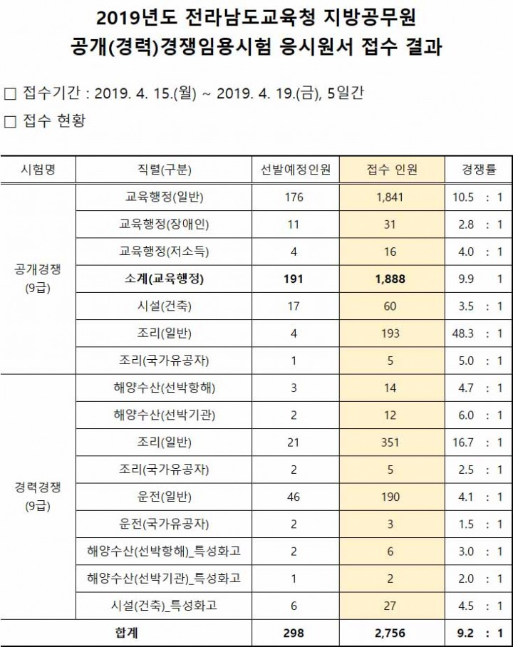 ★ 2019 전남교육청 지방공무원 공개(경력)경쟁임용시험 경쟁률 페이지 정보 작성자 관리자 댓글 0건 조회 1,655회 작성일 19-04-25 18:36 목록 본문 [이 게시물은 관리자님에 의해 2019-04-25 18:37:39 최근시험공고문에서 복사 됨] 이전글★ 2019 제1차 경찰청 경찰공무원(순경) 채용시험 경쟁률 19.04.03 다음글★ 2019 광주시 소방공무원 필기시험 합격선 19.04.25 댓글 0 댓글목록 등록된 댓글이 없습니다.