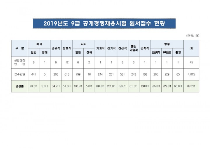 ★ 2019 국회사무처 9급 공개경쟁채용시험 경쟁률 페이지 정보 작성자 관리자 댓글 0건 조회 1,513회 작성일 19-06-04 21:19 목록 본문 [이 게시물은 관리자님에 의해 2019-06-04 21:19:11 최근시험공고문에서 복사 됨] 이전글★ 2019 제17회 국회사무처 8급 공개경쟁채용시험 필기시험 합격선 19.06.04 다음글★ 2019 경기도 소방공무원 신규채용 필기시험 합격선 19.05.09 댓글 0 댓글목록 등록된 댓글이 없습니다.