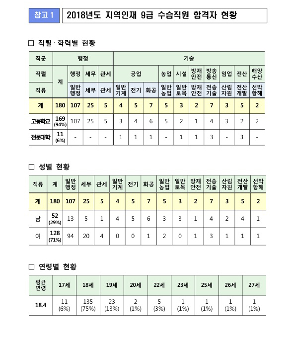 ☆ 2018 인사혁신처 지역인재 9급 수습직원 선발시험 최종합격자 통계