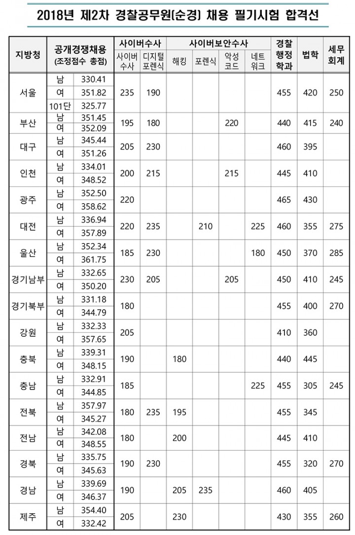 ★ 2018 2차 경찰공무원 채용시험 필기시험 합격선