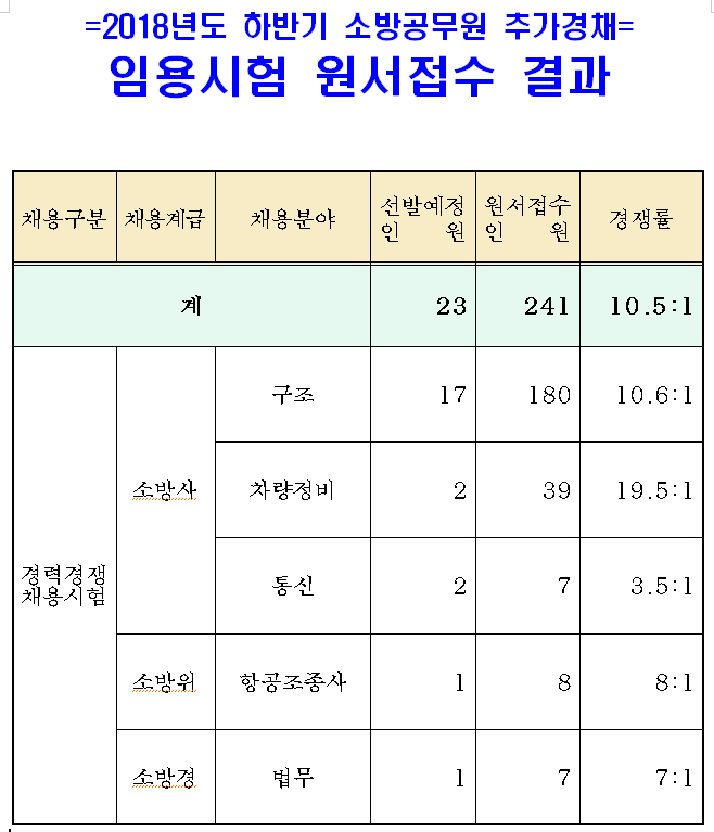 - 다음글☆ 2018 하반기 중앙소방학교 국가소방공무원 경력경쟁 채용시험 경쟁률(최종) 18.08.29