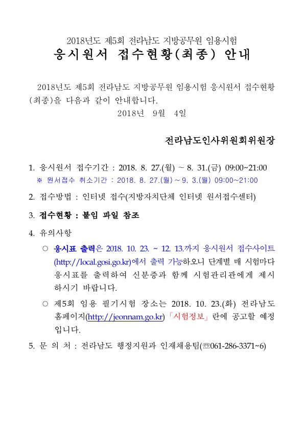 ★ 2018 제5회 전남 지방공무원 임용시험 경쟁률(최종)
