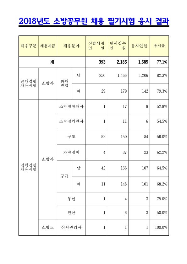 ★ 2018 전북 소방공무원 채용 필기시험 응시율 페이지 정보 작성자 관리자 댓글 0건 조회 2,091회 작성일 18-04-13 21:32 목록 본문 이전글2018 인사혁신처 중증장애인 국가공무원 경력경쟁채용 경쟁률 18.04.13 다음글★ 2018 제2회 전남 지방공무원 임용시험 경쟁률(최종) 18.04.13 댓글 0 댓글목록 등록된 댓글이 없습니다.