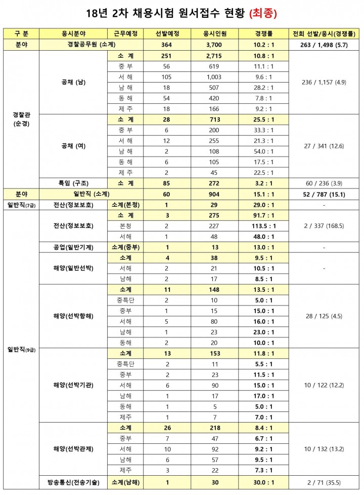 2018 제2차 해양경찰청 소속 경찰공무원 및 일반직공무원 채용 경쟁률 페이지 정보 작성자 관리자 댓글 0건 조회 2,023회 작성일 18-03-19 21:58 목록 본문 이전글☆ 2018 중앙소방학교 지방소방공무원 경력경쟁채용시험 경쟁률 18.03.20 다음글2018 제1회 인천시 지방공무원 임용시험 원서접수 결과 18.03.19 댓글 0 댓글목록 등록된 댓글이 없습니다.