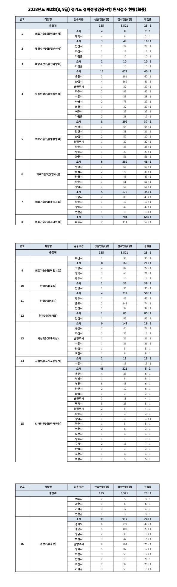 ★ 2018 제2회 경기도 지방공무원(8,9급) 경력경쟁임용시험 경쟁률 페이지 정보 작성자 관리자 댓글 0건 조회 2,293회 작성일 18-03-05 16:14 목록 본문 ㅇ 필기시험 : 2018. 4. 7(토) 이전글★ 2018 서울시 지방소방공무원 신규채용시험 경쟁률(최종) 18.03.05 다음글☆ 2018 전북 지방소방공무원 채용시험 경쟁률(잠정) 18.03.02 댓글 0 댓글목록 등록된 댓글이 없습니다.