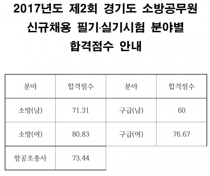 ★ 2017 제2회 경기도 소방공무원 신규채용 필기·실기시험 분야별 합격선