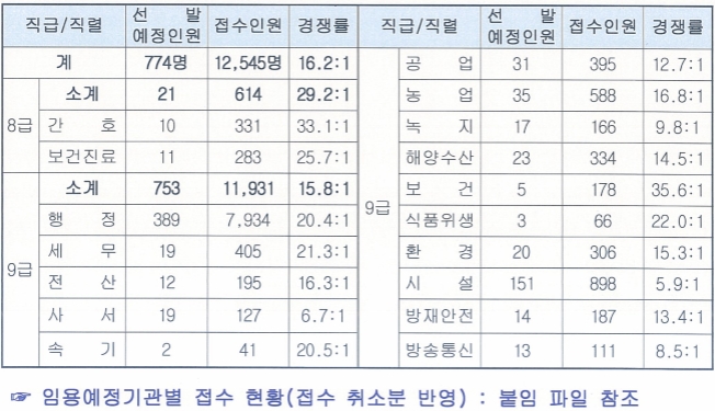 2017 제3회 전남 지방공무원 임용시험 경쟁률(최종)