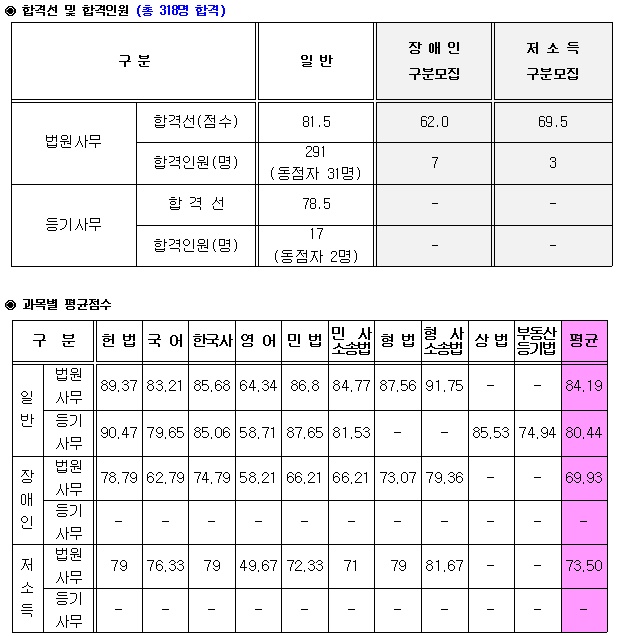 2017 법원행정처 9급 공개경쟁채용시험 제1,2차 시험 합격자 관련 통계