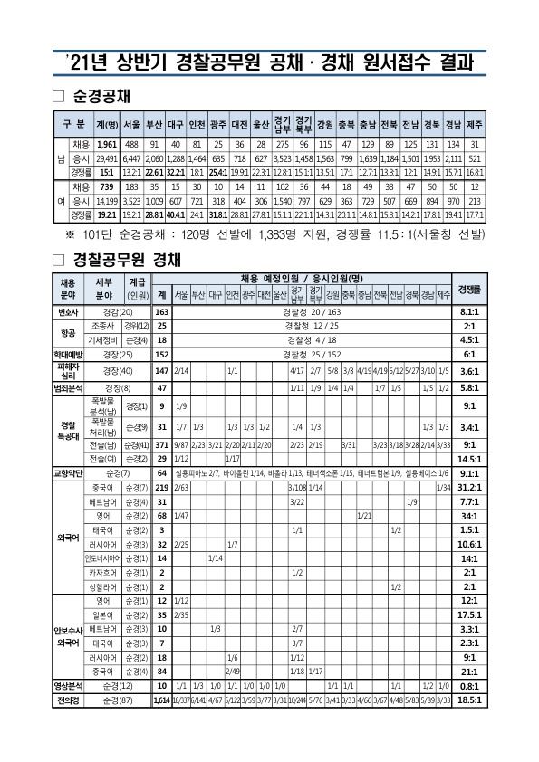 ★ 2021 상반기 경찰청 경찰공무원 공채·경채 경쟁률