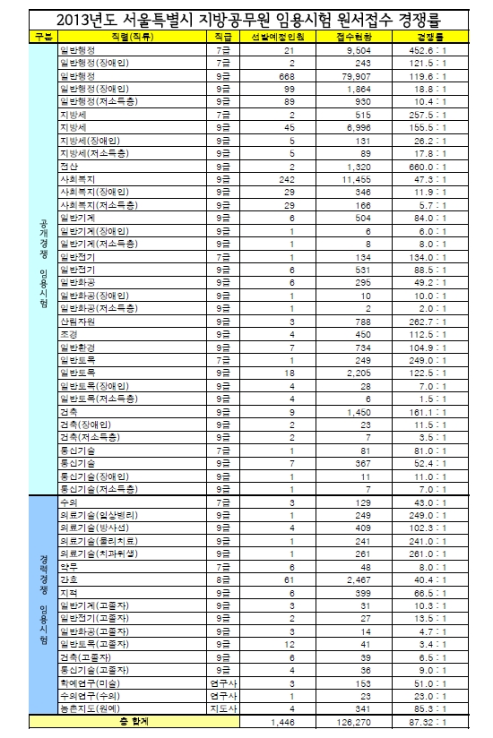 ☆ 2013 서울시 지방공무원 임용시험 경쟁률(잠정)