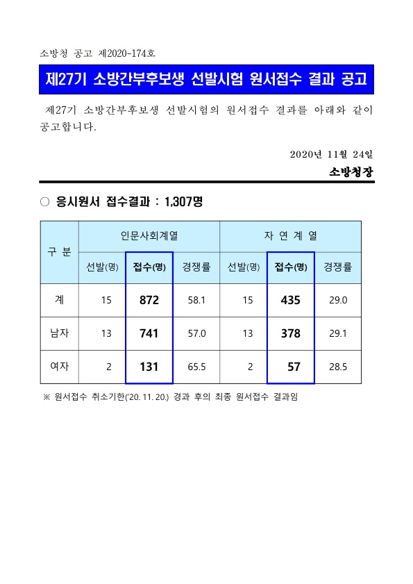 2021 제27기 중앙소방학교 소방간부후보생 선발시험 경쟁률 페이지 정보 작성자 관리자 댓글 0건 조회 2,079회 작성일 20-11-28 09:09 목록 본문 [이 게시물은 관리자님에 의해 2020-11-28 09:09:53 최근시험공고문에서 복사 됨] 이전글☆ 2020 제3회 광주시 지방공무원 임용시험 경쟁률 20.11.28 다음글☆ 2020 제3회 전남교육청 지방공무원 공개경쟁임용시험 경쟁률 20.11.23 댓글 0 댓글목록 등록된 댓글이 없습니다.