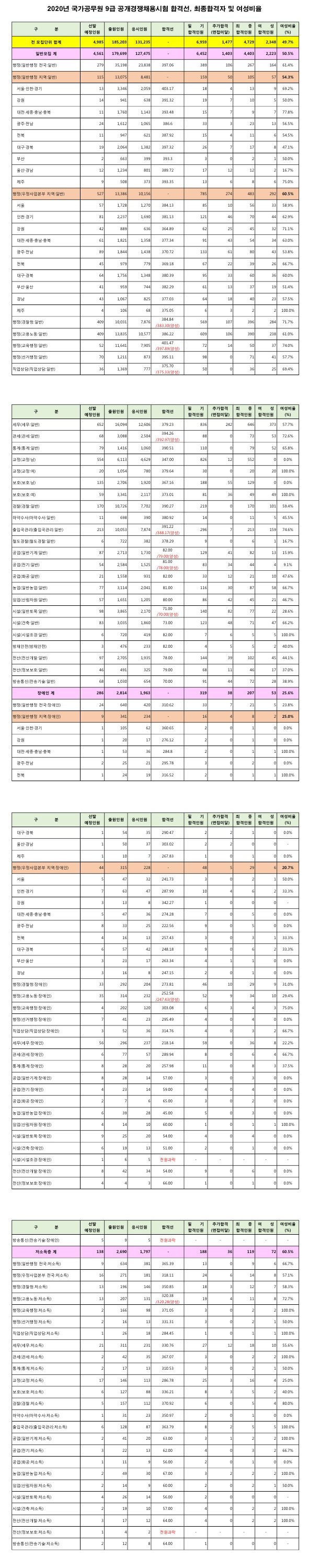 ★ 2020 인사혁신처 국가공무원 9급 공채시험 최종합격자 통계