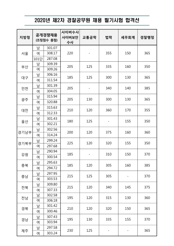 ★ 2020 제2차 경찰청 경찰공무원 채용 필기시험 합격선