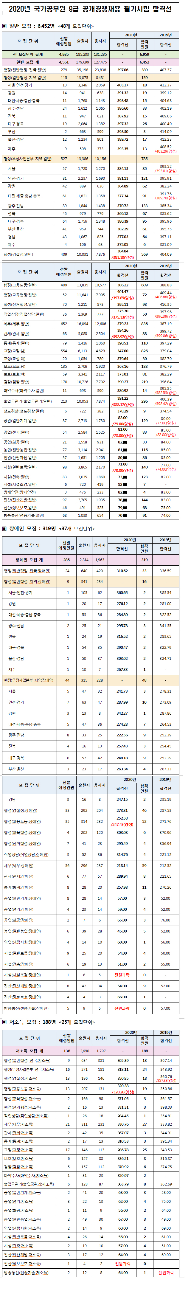★ 2020 인사혁신처 국가공무원 9급 공개경쟁채용 필기시험 합격선